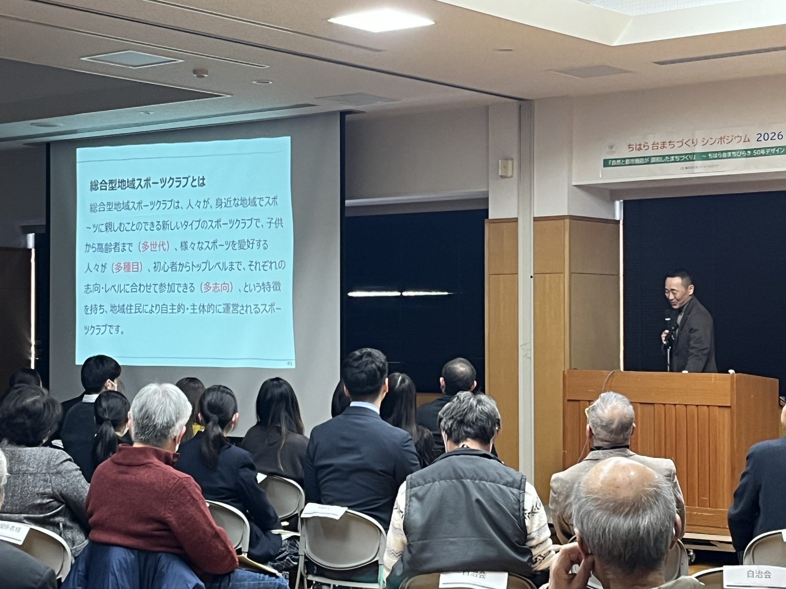2026年2月8日(日)ちはら台コミュニティーセンターにて「ちはら台まちづくりシンポジウム2026」が開催され、本アカデミー高橋仁会長が「地域に開かれた大学と総合型地域スポーツクラブの役割について」の講演を行いました。